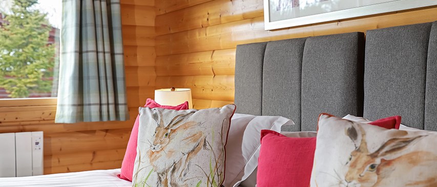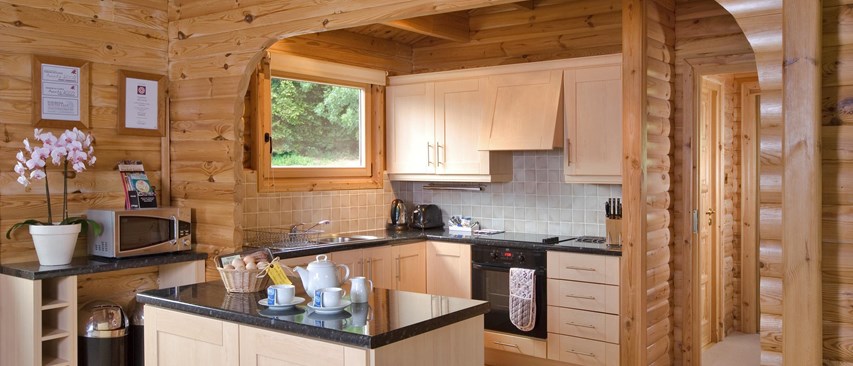 Beautiful exposed pine logs and vaulted ceilings offer contemporary and relaxing living area. The lodges are heated throughout and are lovely and warm even when it is chilly outside. A large LCD, Smart TV's with streaming apps and Bluetooth speaker system is provided. A flame effect, log burning stove also adds an extra coziness on a winters evening. Large double doors open onto a private decked balcony where you will find a BBQ area.